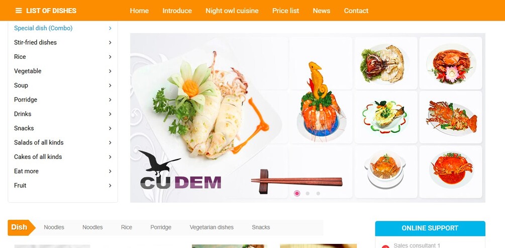 Food interface template for food and beverage stores, night food, snack bars, fully functional interface